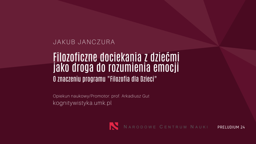 We are delighted to announce that Jakub Janczura has been awarded a grant from the National Science Centre under the PRELUDIUM 24 competition. The project, titled „Philosophical Inquiry with Children as a Path to Emotional Understanding: On the Significance of the 'Philosophy for Children’ Program,” supervised by Prof. Arkadiusz Gut, will involve comprehensive research aiming to identify the extent to which children’s participation in philosophical discussions about emotions contributes to the development of their emotional knowledge and skills. The Philosophy for Children approach assumes that philosophizing aids children in abstract thinking, argumentation, and the creation of alternative concepts.